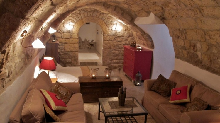 The vaulted Kamara/Studio where animals once lived, is now a stylish studio with French windows that open onto the garden.